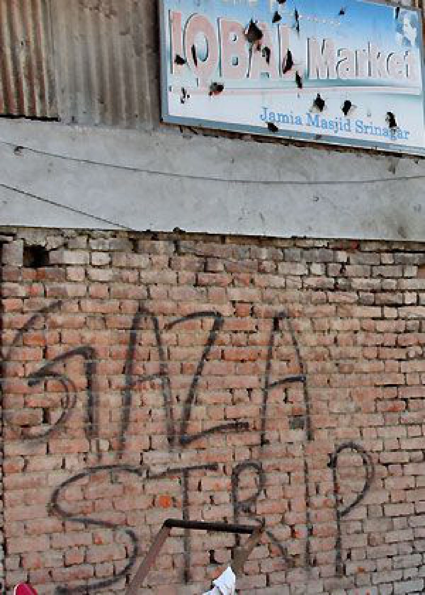 Am Märtyrerfriedhof treffe ich einen jungen Mann, der sich Yussuf nennt. Ich verabrede mich mit ihm an einem ruhigeren Ort. In seinem bürgerlichen Leben ist der schmächtige Zwanzigjährige mit der Baseballkappe Journalist, und damit nicht unbedingt schlecht gestellt, aber zuallererst sieht er sich als Kaschmiri. Wenn über Facebook oder Twitter der Aufruf zu einer Aktion kommt, muss er nicht zweimal nachdenken. Dann muss er handeln, und die Arbeit muss warten. Die wieder aufgeflammte Gewalt in Kaschmir ist für ihn nur logisch, weil erstens die Grundforderung nach einem Plebiszit noch nicht erfüllt wurde, und weil zweitens die Sicherheitskräfte fortgesetzt gewaltsam gegen, wie er es nennt, legitime Demonstrationen, vorgehen. Seine Rechtfertigung für Gewaltanwendung, die von Demonstranten ausgeht lautet: „Wenn man man Waffen angegriffen wird, hat man jedes Recht, sich mit Steinwürfen zu wehren.“ Es ist also ein ungleicher Kampf, der hier in Kaschmir momentan seine Fortsetzung findet. Im Zentrum der Kritik steht auch die Landesregierung von Kaschmir, der mittlerweile der dritte Spross der Abdullah-Dynastie vorsteht – Omar Abdullah, der den größten Teil seines Lebens in England verbracht hat. Seine Regierung gilt vielen Kaschmiris lediglich als willfährige Marionettenregierung von Neu Delhis Gnaden. Warum aber begnügen sich die Demonstranten mit Steinwürfen, frage ich den zornigen jungen Mann? Warum greifen sie nicht auf Maschinenpistolen und Bombenattentate zurück, um den Sicherheitskräften größere Verluste beizubringen, wie in der Vergangenheit? Schließlich sind die Waffen ja massenhaft vorhanden. Seine Antwort fällt überraschend aus: „Weil“, so teilt er mir mit, „jeder, der heutzutage sein legitimes Recht auf Selbstverteidigung mit der Waffe in der Hand verteidigt“, das Label eines Terroristen aufgedrückt bekommt – mit allen Konsequenzen. Außerdem habe ja auch die Protestbewegung in Ägypten gezeigt, dass massive friedliche Proteste doch einiges bewegen könnten. Nun, das mit dem friedlichen Protest in Ägypten kann man zwar auch anders sehen, aber, die Frage die sich in diesem Kontext stellt, lautet: Ist der Protest hier so etwas, wie eine kaschmiri Intifada? Ein Aufstand der Jugend gegen einen übermächtigen Gegner, vertreten durch immer noch mehrere hunderttausend indische Militärstreitkräfte im Tal? Betrachtet Yussuf den Aufstand der palästinensischen Jugendlichen gegen Israel als Vorbild für sein eigenes Handeln? Zahlreiche Graffiti in Dowtown Srinagar legen den Gedanken nahe, und die Graffiti sind relativ neu.