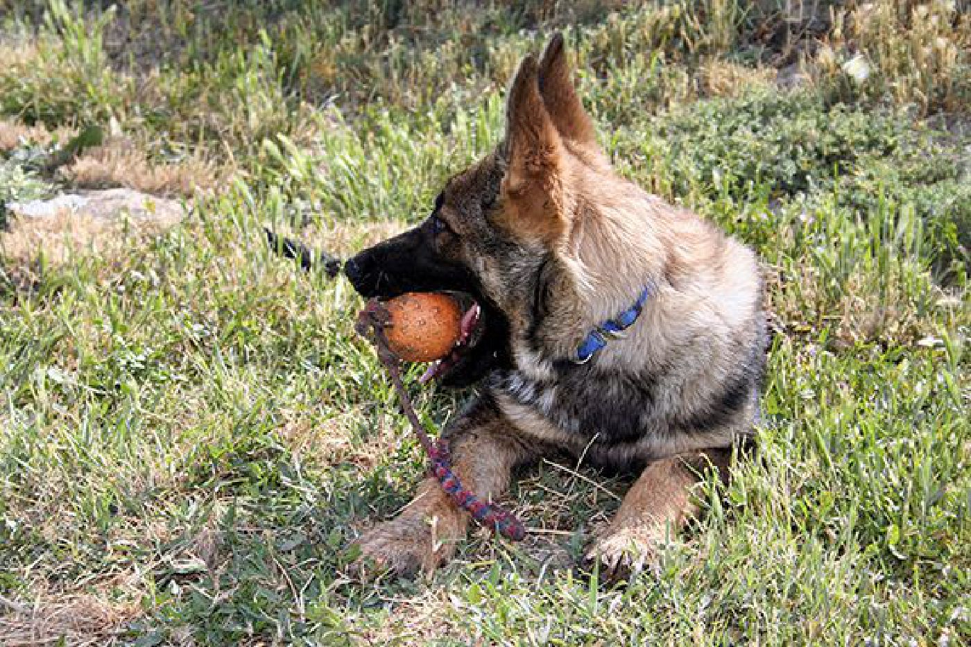 Gerade hat ein Schäferhundrüde eine vergrabene russische Antipersonen-Mine gefunden und zeigt sie durch hinsetzen an. Der Hundeführer ruft das Tier zurück, rauft ausgiebig mit ihm und überlässt ihm den Ball. Deutlich ist dem Hund die Freude anzumerken. Im Ernstfall würde nun ein zweiter Suchhund die selbe Strecke ablaufen. Erst dann würde das Räumkommando anrücken und die Mine entfernen.