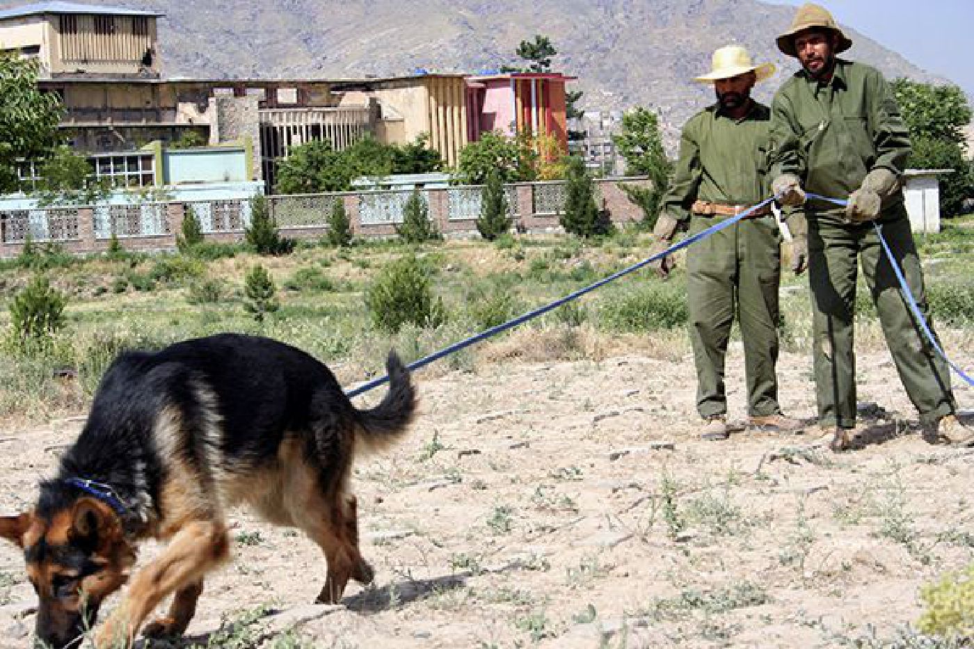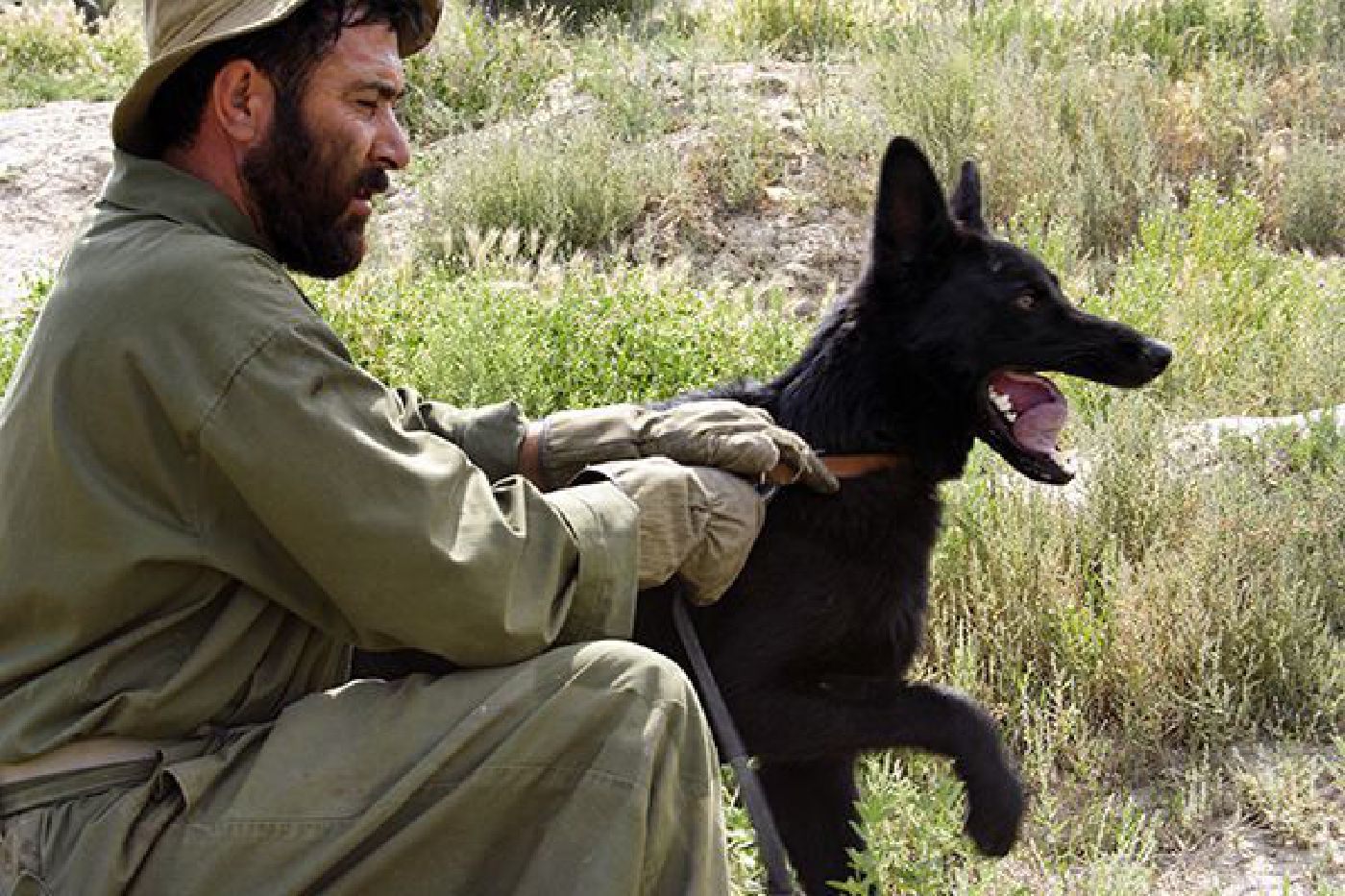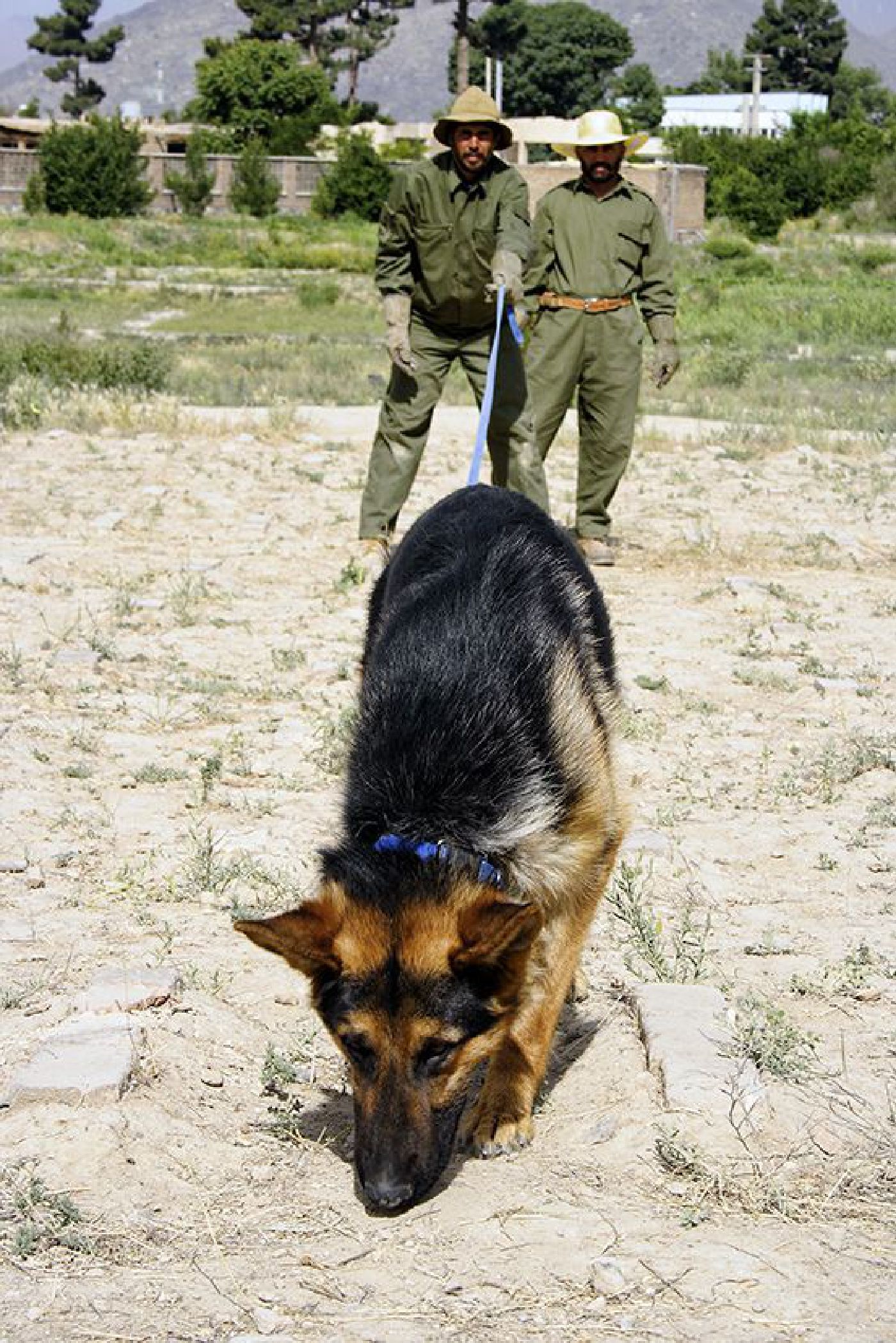 Am Ende der Ausbildung, in der „pre-deployment“ Phase, muss der Suchhund in der Lage sein, ohne Leine ein mutmaßliches Minenfeld systematisch abzusuchen. Wird der Hund fündig, hat er seinen Fund anzuzeigen. Dies kann durch hinsetzen, umblicken zum Hundeführer oder verbellen geschehen“, erklärt Habibullah, der Chefausbilder. In keinem Fall darf er jedoch anfangen zu graben oder zu scharren, aus naheliegenden Gründen. „Die Minen haben ein Auslösegewicht von bereits drei Kilogramm“, weiß Mario Boer, der seinerzeit das Handwerk bei der Nationalen Volksarmee erlernt hat. „Wenn ein ausgewachsener Schäferhund von etwa 30 Kilo sich darauf stürzt und buddelt, kann eine Landmine sehr leicht explodieren“, mit fatalen Folgen für Hund und Mensch. Aus diesem Grund sind auch aggressive Hunde nicht erwünscht bei den Minensuchern. Das Risiko ist einfach zu hoch.
