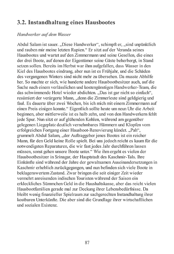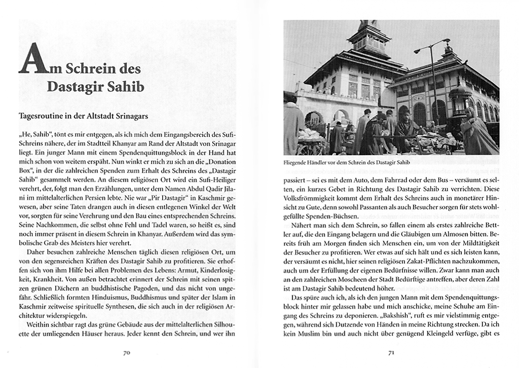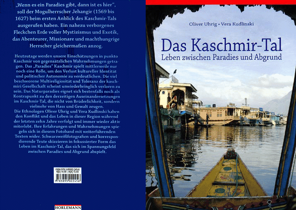 Die beiden Autoren und Ethnologen, Oliver Uhrig und Vera Kudlinski haben das Kaschmir-Tal im Laufe der vergangenen 20 Jahre immer wieder besucht und insgesamt zwei Jahre dort gelebt. Während dieser Zeit haben sie das Leben, das Leiden und das Hoffen der Menschen in der konfliktgeplagten Region Nordindiens miterlebt und dokumentiert. Ihre Beobachtungen finden sich in diesem Band wieder, und sie geben Anlass zur Besorgnis. Zahlreiche Farbfotografien, historische Dokumente und erläuternde Grafiken visualisieren und unterstreichen nachdrücklich die Erkenntnisse der Autoren. Ein zeitgemäßer Beitrag zur Kulturgeschichte Indiens.