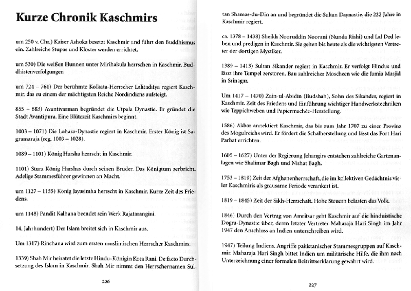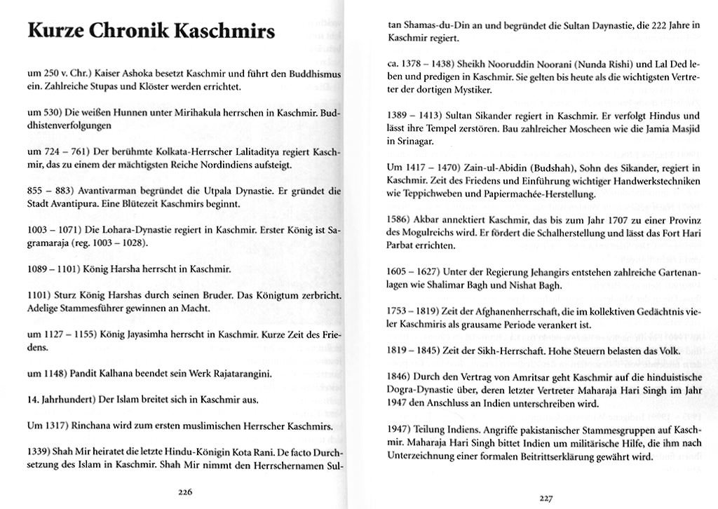 „Wenn es ein Paradies gibt, dann ist es hier“, rief einst der Mogulherrscher Jehangir (1509 - 1627) beim ersten Anblick des Kaschmir-Tals in Verzückung aus. Über die Jahrhunderte etablierte sich ein Mythos um das kleine Kaschmir-Tal, der dieses Fleckchen Erde mit dem Garten Eden gleichsetzte. Ein fast verborgenes Paradies voll Mystizismus und Exotik, das Abenteurer, Missionare und machthungrige Herrscher gleichermaßen anzog.